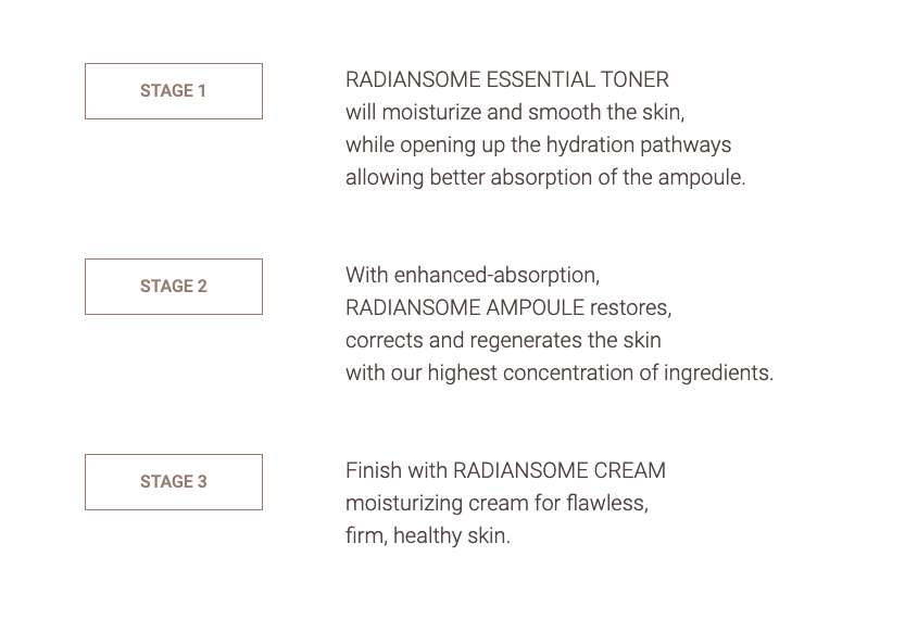 Unleash the Radiance. Harness the transformative effects of the Radiansome Skincare System to achieve a healthy, luminous complexion with our meticulously crafted formulations, designed to enhance your natural beauty.